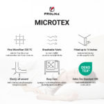 - ทอด้วย เส้นใย Fine Microfiber จำนวน 330 เส้นต่อ 10 ตร.ซม.
