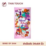 “ให้เสียงคลื่นและแสงแดดปลอบประโลมใจ โดยมี Touch of Thai เป็นดั่งพื้นที่ส่วนตัวของคุณบนผืนทราย เราบรรจงถ่ายทอดเอกลักษณ์ความงดงามของไทยลงบนผ้าขนหนูที่นุ่มนวลที่สุด สัมผัสความนุ่มฟูเหนือระดับด้วยเทคนิคการตัดขนหน้าผ้า (Sheared Cotton) ที่มอบความละมุนดุจกำมะหยี่ ให้คุณเอนกายลงบนหาดทรายได้อย่างสบายตัวและผ่อนคลายที่สุด เพื่อเปลี่ยนทริปพักผ่อนของคุณให้เป็นช่วงเวลาแห่งการฟื้นฟู (Sanctuary of Recovery) ที่สมบูรณ์แบบ ไม่ว่าคุณจะอยู่ที่มุมไหนของโลก” โดดเด่นด้วยลวดลายที่ออกแบบมาเป็นพิเศษเพื่อสะท้อนเสน่ห์ของไทย พิมพ์ลายด้วยระบบ Reactive ที่ให้สีสันสดใส ฝังลึกไปกับเส้นใย ไม่ซีดจางง่าย และปลอดภัยต่อผิวของคุณ เนื้อผ้าทอด้วยเส้นใยฝ้ายธรรมชาติแท้ 100% คุณภาพสูง ขนาด 34×64 นิ้ว ให้ความแข็งแรง ทนทาน รองรับกับทุกกิจกรรมกลางแจ้งได้เป็นอย่างดี เนื้อผ้าซับน้ำได้ดี อีกทั้งยังแห้งไว ไร้กลิ่นอับชื้น และไม่ก่อให้เกิดการระคายเคืองต่อผิว ให้คุณ chill out & relax ให้อย่างรื่นรมย์”