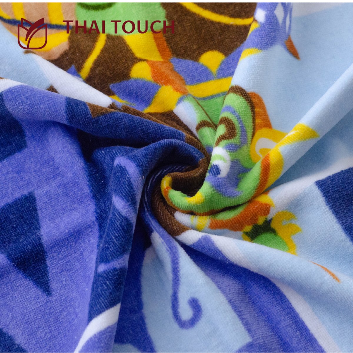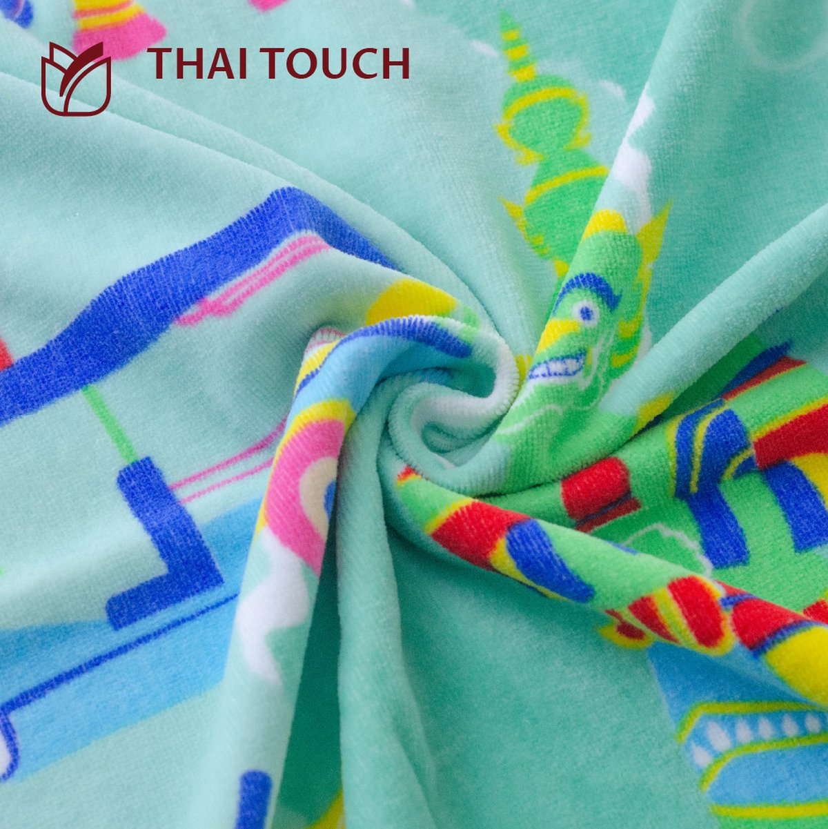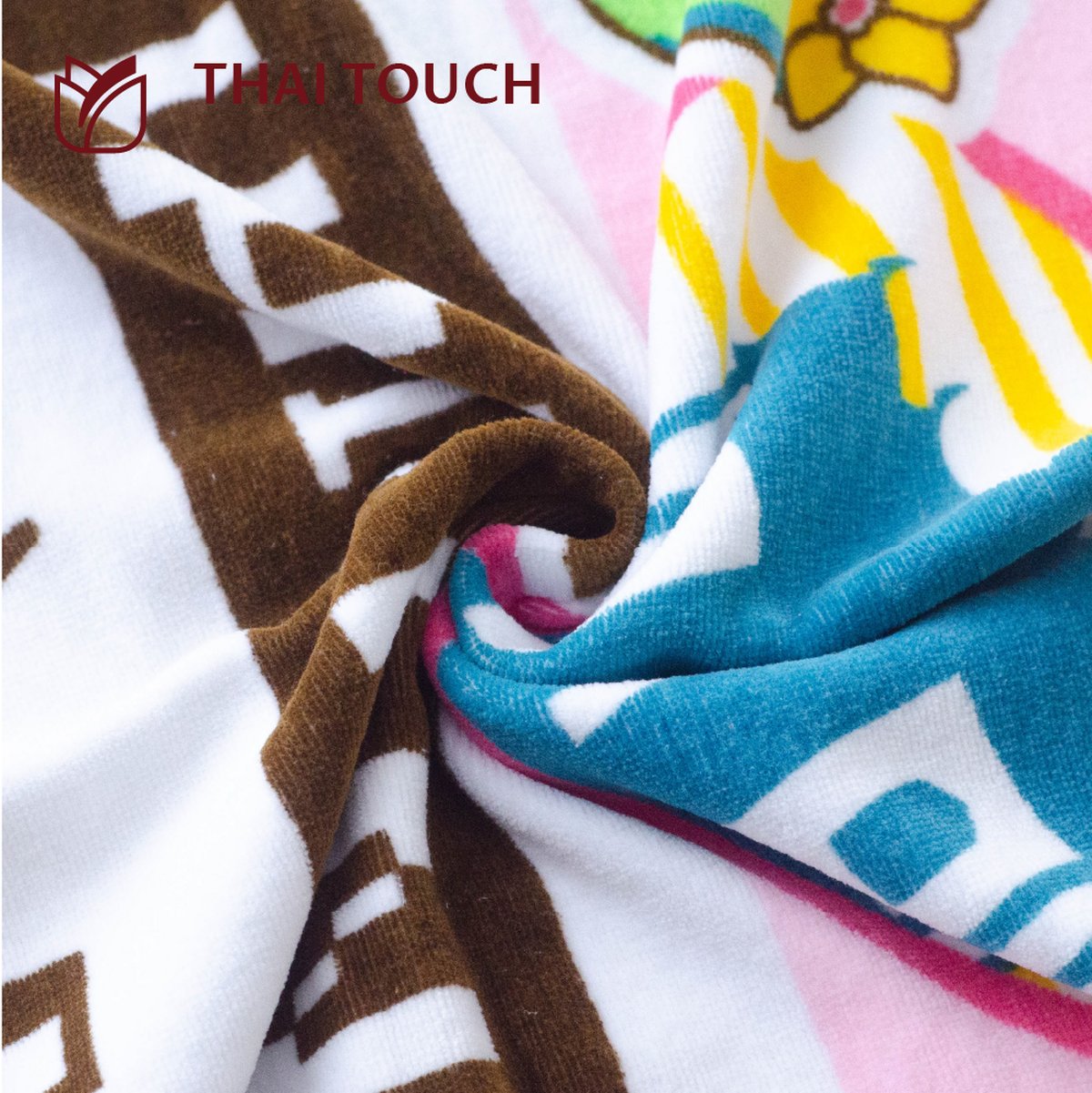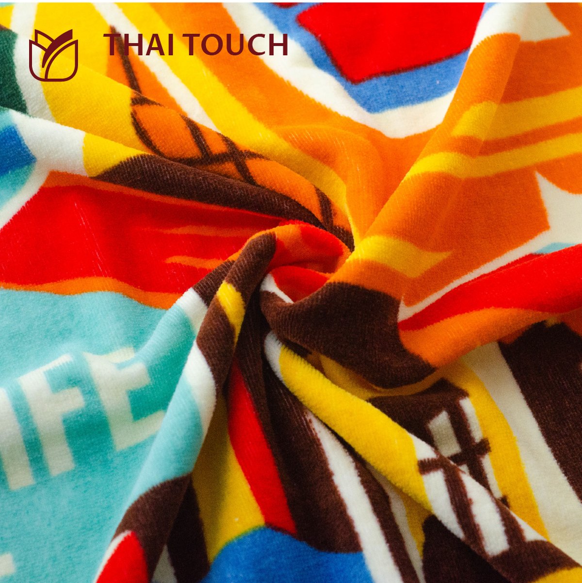 “ให้เสียงคลื่นและแสงแดดปลอบประโลมใจ โดยมี Touch of Thai เป็นดั่งพื้นที่ส่วนตัวของคุณบนผืนทราย เราบรรจงถ่ายทอดเอกลักษณ์ความงดงามของไทยลงบนผ้าขนหนูที่นุ่มนวลที่สุด สัมผัสความนุ่มฟูเหนือระดับด้วยเทคนิคการตัดขนหน้าผ้า (Sheared Cotton) ที่มอบความละมุนดุจกำมะหยี่ ให้คุณเอนกายลงบนหาดทรายได้อย่างสบายตัวและผ่อนคลายที่สุด เพื่อเปลี่ยนทริปพักผ่อนของคุณให้เป็นช่วงเวลาแห่งการฟื้นฟู (Sanctuary of Recovery) ที่สมบูรณ์แบบ ไม่ว่าคุณจะอยู่ที่มุมไหนของโลก” โดดเด่นด้วยลวดลายที่ออกแบบมาเป็นพิเศษเพื่อสะท้อนเสน่ห์ของไทย พิมพ์ลายด้วยระบบ Reactive ที่ให้สีสันสดใส ฝังลึกไปกับเส้นใย ไม่ซีดจางง่าย และปลอดภัยต่อผิวของคุณ เนื้อผ้าทอด้วยเส้นใยฝ้ายธรรมชาติแท้ 100% คุณภาพสูง ขนาด 34×64 นิ้ว ให้ความแข็งแรง ทนทาน รองรับกับทุกกิจกรรมกลางแจ้งได้เป็นอย่างดี เนื้อผ้าซับน้ำได้ดี อีกทั้งยังแห้งไว ไร้กลิ่นอับชื้น และไม่ก่อให้เกิดการระคายเคืองต่อผิว ให้คุณ chill out & relax ให้อย่างรื่นรมย์”