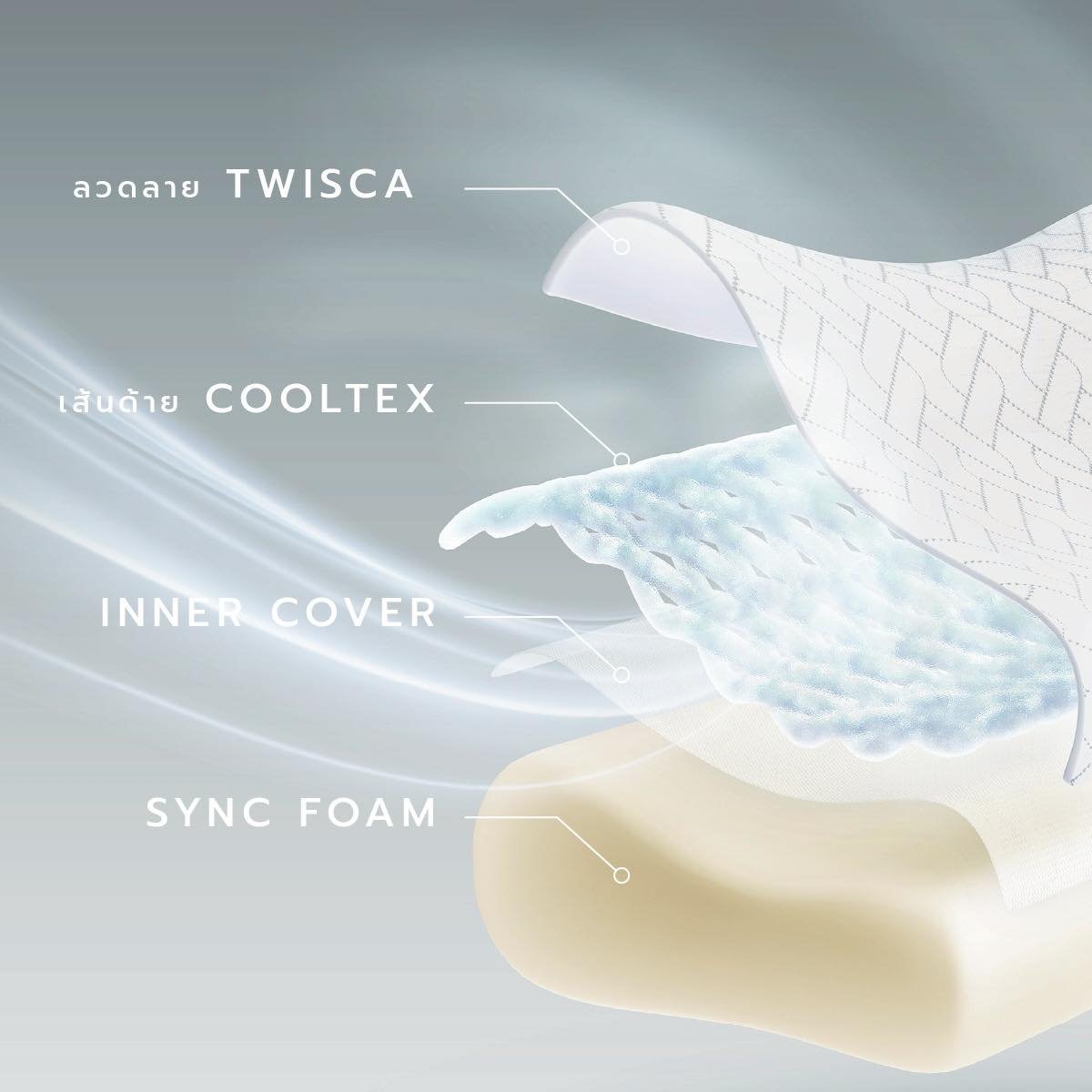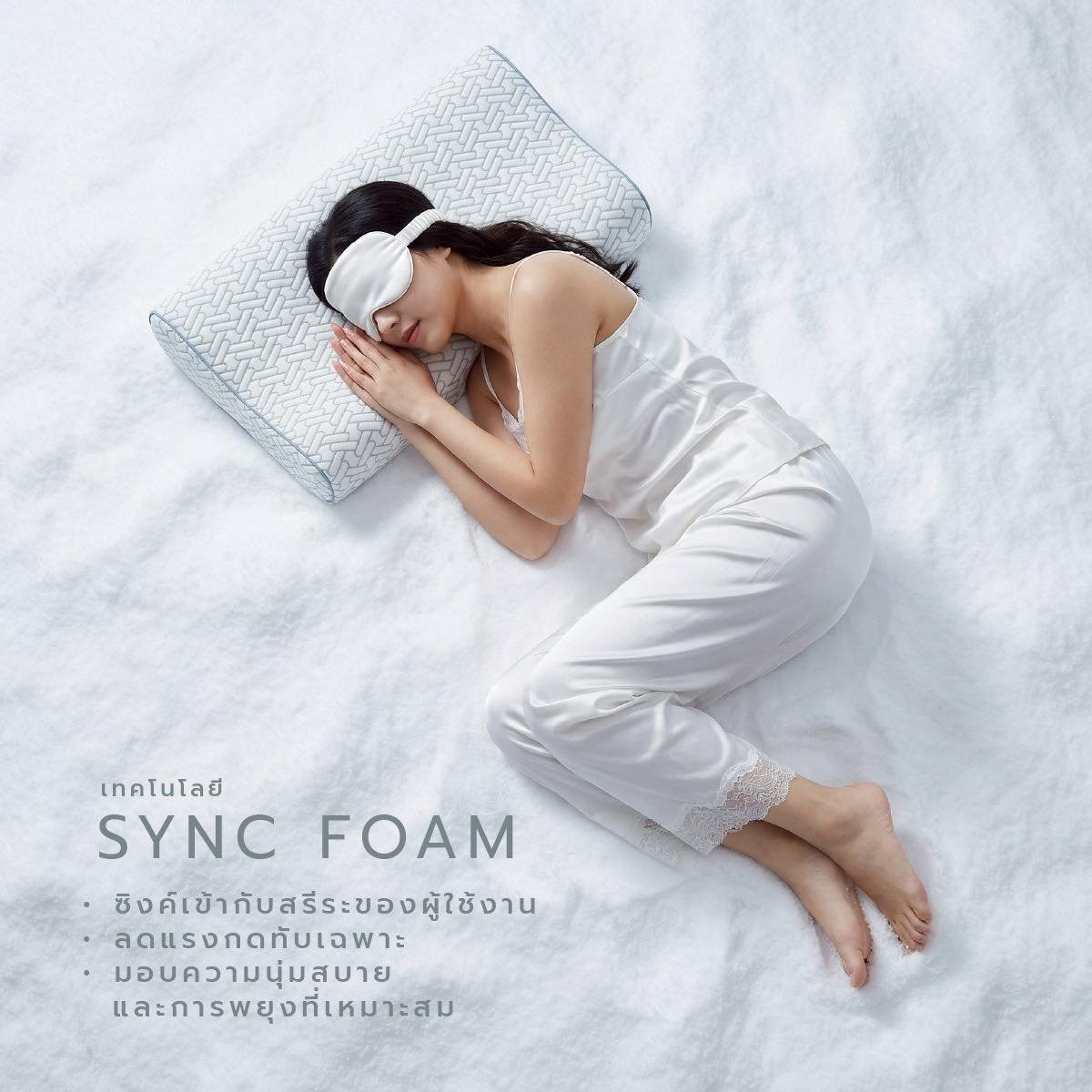 # หัวใจของการพักผ่อนคือ SYNC Foam ที่ซิงค์เข้ากับสรีระผู้ใช้งาน ช่วยลดแรงกดทับ จัดแนวคอและไหล่